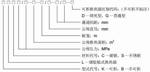 3、螺旋板式换热器型号表示方法如下: